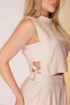 Confeccionada em alfaiataria levemente estruturada, ela se ajusta ao corpo de maneira impecável, destacando sua silhueta.